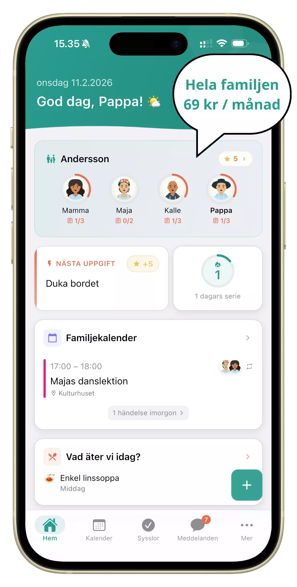 Perhe.app är byggd för hela familjen och gör det enklare att dela vardagen — tillsammans.